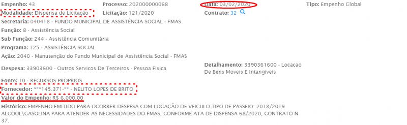 de gabinete. Mesmo assim o Prefeito Junior Bandeira achou por bem custear um segundo gabinete todo equipado, construído em uma área de 360m². Informações que o imóvel pertence a uma funcionária nomeada na Secretaria Municipal de Saúde, situado no Setor Aeroporto, o gabinete passou por reforma completa e nunca funcionou. A reportagem não encontrou nenhuma informação no portal da transparência sobre valores gastos na reforma e manutenção do local. A reportagem apurou também que o prisma branco 2018/2019 de placa QKJ 0399 adquirido pelo sistema PCD (pessoas com deficiência) alugado sem licitação por R$ 6 mil, para o Fundo Municipal de Assistência Social – FMAS, e usado pelo Secretário Levy Lopes, pertence ao sogro dele, Nelito Lopes de Brito.