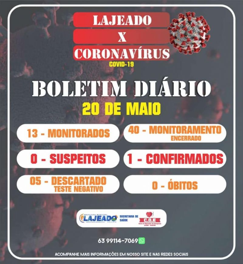 - TO, tem o primeiro caso confirmado de coronavírus no município. A informação