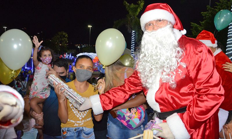 Dois dos principais cartões-postais do Tocantins, o Palácio Araguaia e a Praça dos Girassois, também estão preparados para receber os visitantes com muitas luzes e decoração que remetem ao nascimento de Jesus. A inauguração da iluminação e da decoração do local foi realizada pelo governador do Estado do Tocantins, Mauro Carlesse, na noite desta quarta-feira, 9, acompanhado de secretários e auxiliares do Governo. Com o tema Dias melhores virão, a iluminação especial deste ano busca elevar o espírito natalino do povo do Tocantins, com um apelo de esperança. Além da decoração natalina, o governador Mauro Carlesse, que chegou ao local caracterizado de Papai Noel em um helicóptero, descerrou a fita da Casa do Papai Noel, acompanhado de dezenas de crianças. Na oportunidade, o Papai Noel distribuiu presentes às crianças que compareceram à festa. Os presentes também receberam cachorro-quente, pipoca, algodão-doce e outras guloseimas que fizeram a festa da criançada. “Esse é um momento de muita alegria para as nossas crianças e me vestir de Papai Noel e me juntar a essas crianças foi uma experiência muito gratificante”, ressaltou o Governador, explicando que a decoração foi preparada levando em consideração todos os protocolos para evitar aglomerações e o contágio pelo novo Coronavírus. Na oportunidade, Mauro Carlesse deixou uma mensagem de boas festas e de que o espírito natalino esteja presente em todos os lares das famílias tocantinenses. “Que o espírito natalino esteja presente em todos os lares das nossas famílias e, desde já, desejo também um ano novo muito melhor, com muita saúde e dias melhores”. Apresentações A programação contou ainda com apresentações musicais pelos cantores Tiago Mangela e Eliane Dourado, que animaram o público com hinos de louvores a Deus. A Banda da Polícia Militar também participou da programação, com apresentações de clássicos que remetem às festas natalinas.unidade o Papai Noel distribuiu presentes