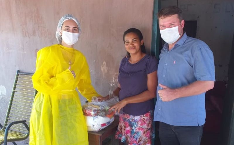 Prefeito de Goiatins Romeu Lakov e a primeira -dama do município na distribuição para os selecionados.