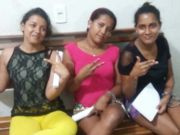 Jovens fazem pose após serem presas suspeitas de tráfico de drogas