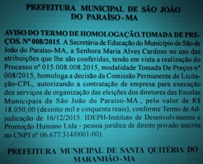 Erro de publicação no DO colocou 30 vezes mais valor de contrato em São João do Paraíso