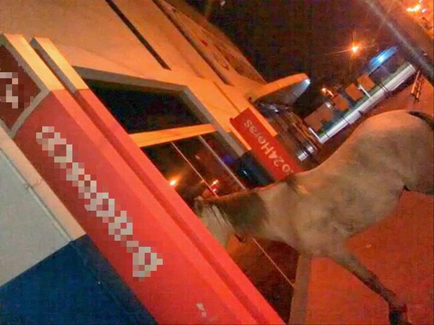 Cavalo na porta de banco no TO faz sucesso nas redes sociais
