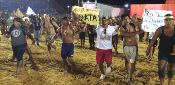 Manifestantes invadem arena e protestam durante Jogos Indígenas